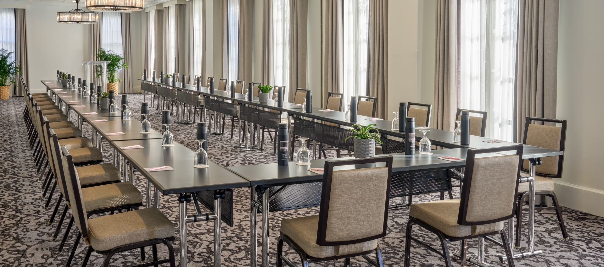 An elegant room for intimate celebrations with close friends and family. This suite is steeped in the history of this hotel, with an iconic 1853 wrought iron balcony overlooking Meeting Street. This space showcases the charm of a hotel that’s dazzled Charlestonians and guests for generations. This space has divisible air walls to have smaller breakout sessions in style.