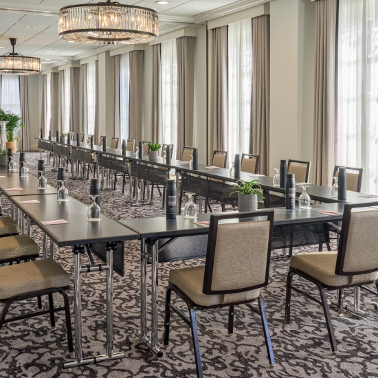 A true Southern ballroom nestled inside our iconic hotel, this beautiful space welcomes guests for celebrations and events beneath elegant chandeliers. Find touches of Charleston charm throughout this ballroom, including antique gold mirrors. This grand ballroom features an adjoining pre-function space on charming Queen Street, and air walls for breakout spaces. Experience a Virtual Tour of this space.